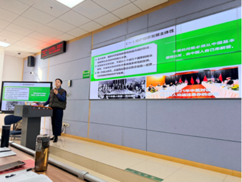 张丹丹老师以扎实的理论功底和清晰的教学思路,结合鲜活案例,深刻阐明了旗帜鲜明反对历史虚无主义的价值立场,梳理了在百年未有之大变局中,坚持立足中国、面向世界的逻辑脉络与实践路径,深刻阐释了新时代做忠诚爱国者的深远意义。督导及与会教师对张老师的课堂给予了高度评价,喻芒青教授点评其课程逻辑清晰、感染力强、学生抬头率和互动率较高,展现了我院教师在理论钻研和教学创新上的活力与潜力,能够将深邃的理论讲深讲透讲活,有效调动学生的课堂参与积极性,充分激发学生的爱国主义情怀、责任与担当。