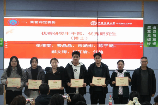 武彦斌宣读《中国地质大学(武汉)马克思主义学院关于2024-2025年度研究生荣誉评定表彰的决定》,学院共表彰优秀个人20余名。