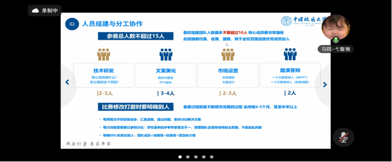 其次,中国国际大学生创新大赛(2025)湖北省银奖团队负责人弋馨雅聚焦“青年红色筑梦之旅”赛道,详细解读公益组、创意组、创业组的组别特点与适配方向。她建议核心团队注重多学科交叉配置,PPT制作需贴合评审逻辑、搭建清晰框架,结合组别特性差异化呈现核心亮点。