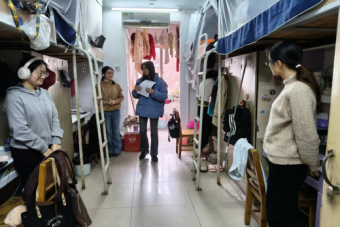 为充分发挥宿舍文化育人功能,提高同学们自我管理能力,树立身边优秀学生集体榜样,营造优良学风环境,助推高素质人才培养,2025年12月30日,马克思主义学院团委书记姚晟及学生会骨干成员走访学生宿舍,在冬日里为同学们送上暖心关怀。