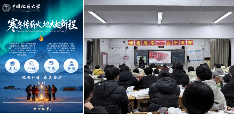 寒冬岁末,暖意涌动,薪火赓续。中国地质大学(武汉)红色之声理论宣讲团的学子们,怀揣赤子之心,肩扛使命担当,以“我把地大带回家”为主题,奔赴省内外多所中学开展招生宣讲活动。他们以青春之音讲述地大故事,用亲身感悟传递信仰力量,将“艰苦朴素、求真务实”的校训精神如种子般播撒在祖国大地,让地质报国的理想与思政铸魂的力量,在青春的接力中生生不息、薪火相传。