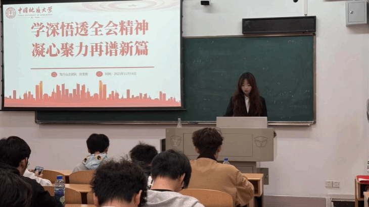 为深入学习贯彻党的二十届四中全会精神,展望“十五五”规划蓝图,11月14日,红色之声“笃行山志”团队于武汉科技大学教1楼13205教室组织召开“学习二十届四中全会精神,解码‘十五五’,青春奋进新征程”主题团会。本次活动由团队成员田雯欣、胡越尧、向晨希担任主讲,武汉科技大学机械类2025级2501、2502、2508班及机工卓越2501班共计97名同学参与。