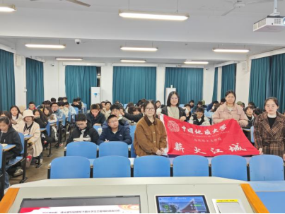 2025年11月19日21时,中国地质大学(武汉)红色之声“薪火江城”团队在教一楼205教室成功开展了以“深入学习贯彻党的二十届四中全会精神”为主题的线下宣讲活动。地理与信息工程学院11C252、11C253和11D253全体同学参与此次活动,团队成员张荣菲、蒋雅琴、姬雯格和张玉芝担任主讲人。