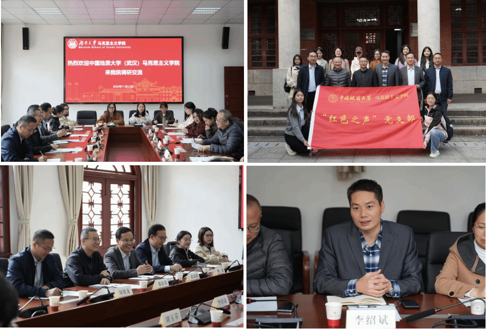 “红色之声”党支部来到湖南大学马克思主义学院,双方学院围绕党建工作的日常管理模式及特色党建创新情况交流新思路新方法,聚焦理论宣讲工作品牌进行深入交流,湖南大学马克思主义学院详细分享了博士理论宣讲团的运营经验以及开展“移动的思政课”创新实践做法,通过推动青年学生深度融入社会大课堂进一步有效提升理论宣传的穿透力,提升青年学生的社会责任感。双方还就党建引领双创工作经验展开了深入探讨。