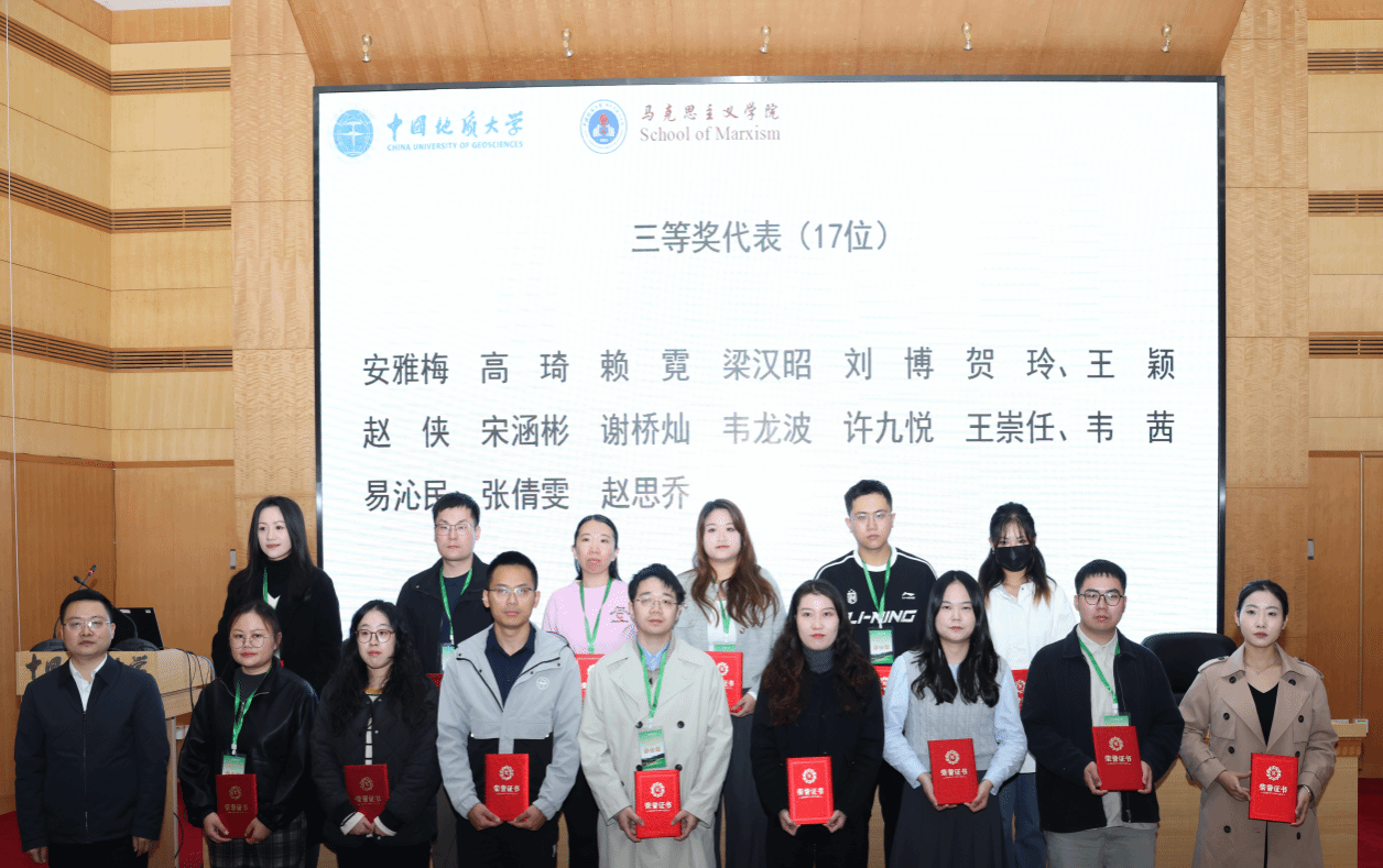 此外,本次论坛还举行了青年学者优秀论文颁奖仪式。分别由湖北省人大常委会委员、湖北省人大教育科学文化卫生委员会副主任委员喻立平为刘凤萍等8位论文一等奖代表进行颁奖;中国地质大学(武汉)党委书记刘杰为敖双莹等13位论文二等奖代表进行颁奖;湖北省委宣传部理论处处长刘超为安雅梅等17位论文三等奖代表进行颁奖。