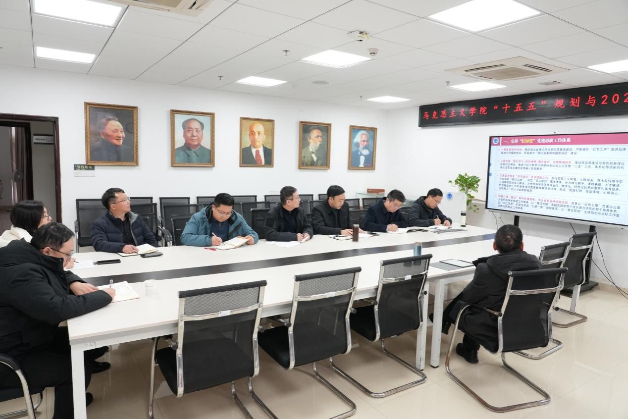 会上,院长阮一帆汇报了学院2026年工作思路。他表示,当前学院正积极推进“十五五”规划编制工作,围绕“十五五”开局之年的目标任务,将以“谋局攻坚年”为主题,着力在完善“红绿蓝”党建思政工作体系、推进新时代思政课“25方案”落地见效、深化思政课数智赋能等方面精准发力,力争实现良好开局。会上,其他班子成员结合分管工作,围绕思政课建设、本硕博人才培养、科研与社会服务、学生思政工作等方面作交流发言。